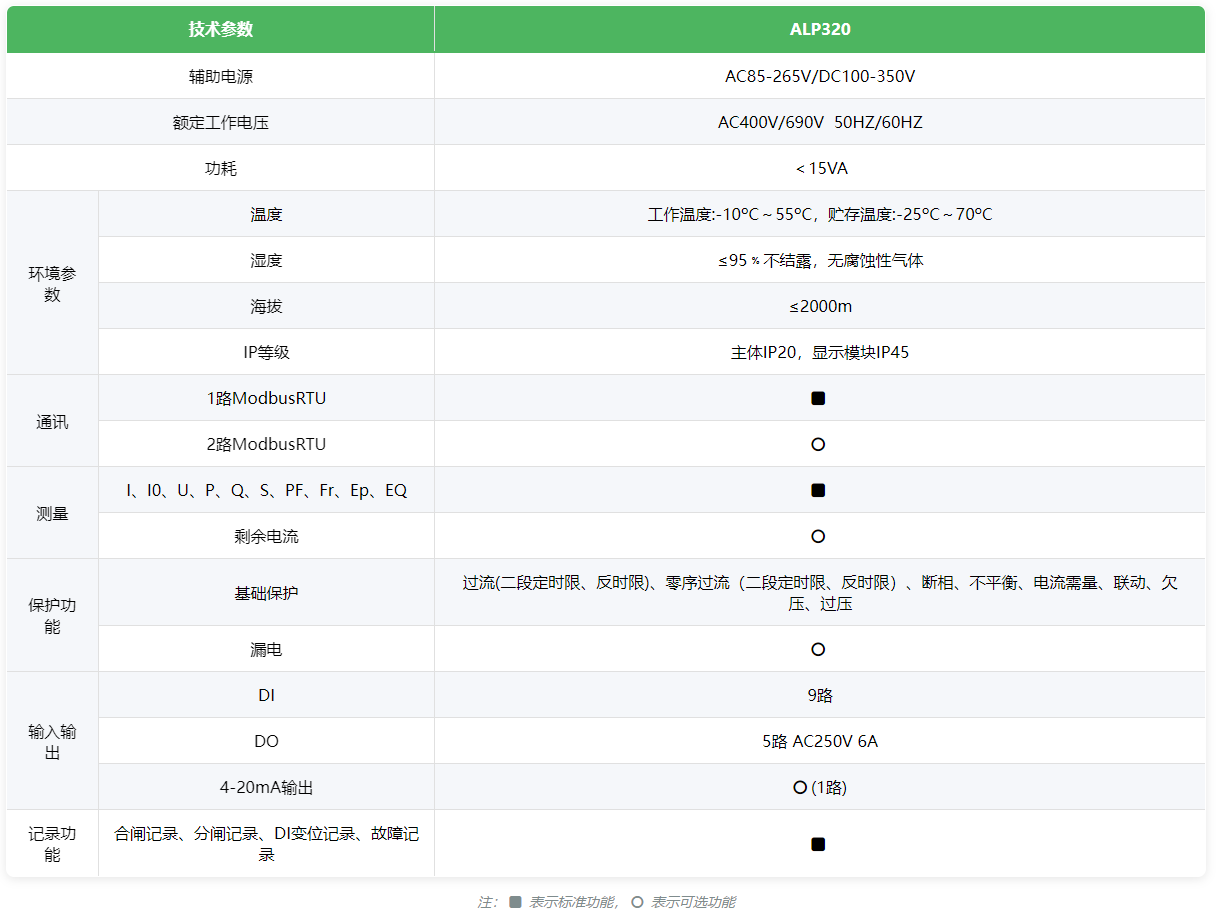 ALP320 系列智能型低压线路保护器,适用于额定电压至 AC690V 低压配电回路,体积小,结构紧凑,安装方便,是低压馈线终端的保护、监测和控制的智能化综合装置。集保护、测量、控制、总线通讯为一体,同时提供了远程自动控制、现场直接控制、面板指示、信号报警、操作记录、跳闸报警记录及开关量记录等功能。